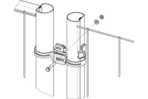- Два хомута 51 с вкладышем, болтом М6, гайкой и шайбой и одно крепление для рулонной сетки - это выполняет роль петли