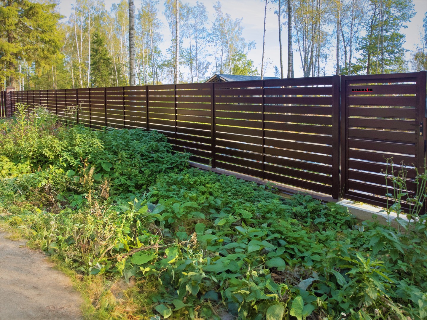 Забор Жалюзи — это секционное ограждение с необычным дизайном от компании Grand Line. Задающее новый тренд и моду в секционных ограждениях.