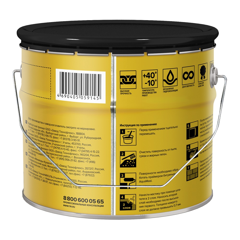 Мастика для фундамента Технониколь AquaMast — это инновационный продукт, который обеспечивает надёжную защиту фундамента от воздействия влаги. Она создаёт водонепроницаемый слой, который не допускает проникновения сточных и грунтовых вод.