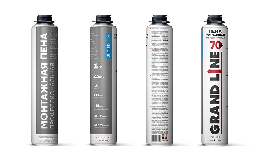 Монтажная пена Grand Line 70+ зимняя имеет специальную формулу, которая обеспечивает повышенный выход пены.
