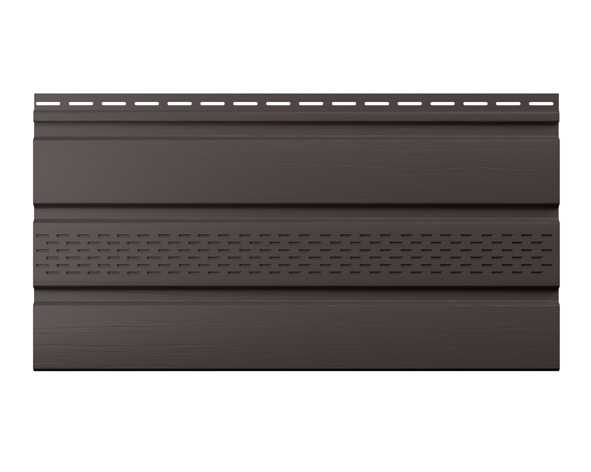 ТН, Софит, частично перфорированный, каштан, 3м используется для оформления потолка в нежилых помещениях, таких как террасы, гаражи, беседки и пр. Защищает от воздействия неблагоприятных погодных условий. Способствует наилучшей вентиляции, препятствует проникновению пыли. Нетоксичный материал. Сочетается почти со всеми видами стен и кровель. Цвет – коричневый. Основа – ПВХ. Длина – 3000 мм. Ширина – 340 мм. Полезная площадь – 0,924 м2. Гарантия – 30 лет. Срок службы – 50 лет. Изготовлено в России.