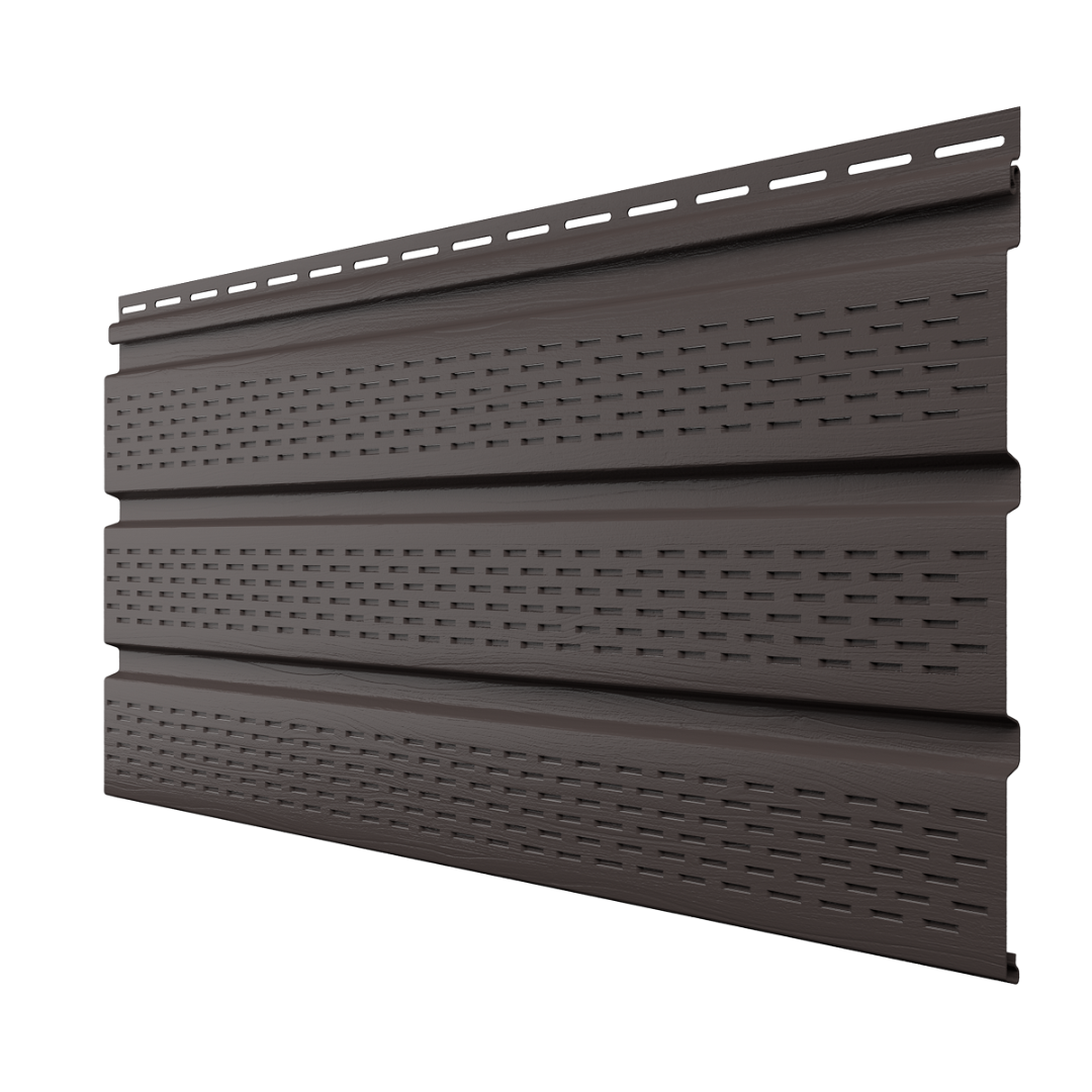 ТН, Софиты, полностью перфорированный, каштан, 3м используется для оформления потолка в нежилых помещениях, таких как террасы, гаражи, беседки и пр. Защищает от воздействия неблагоприятных погодных условий. Способствует наилучшей вентиляции, препятствует проникновению птиц и насекомых под кровлю. Нетоксичный материал. Сочетается почти со всеми видами стен и кровель.